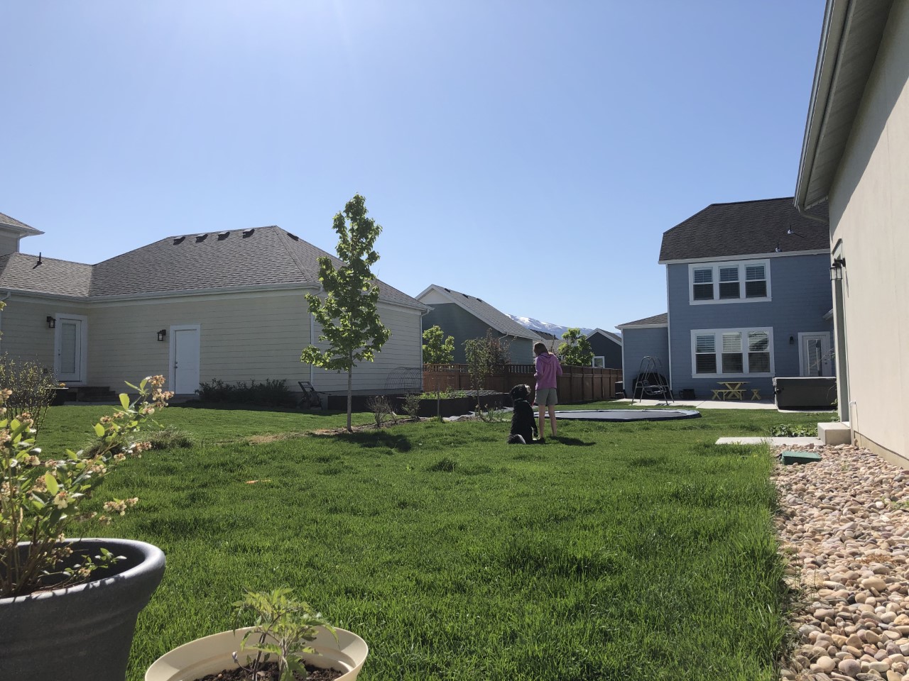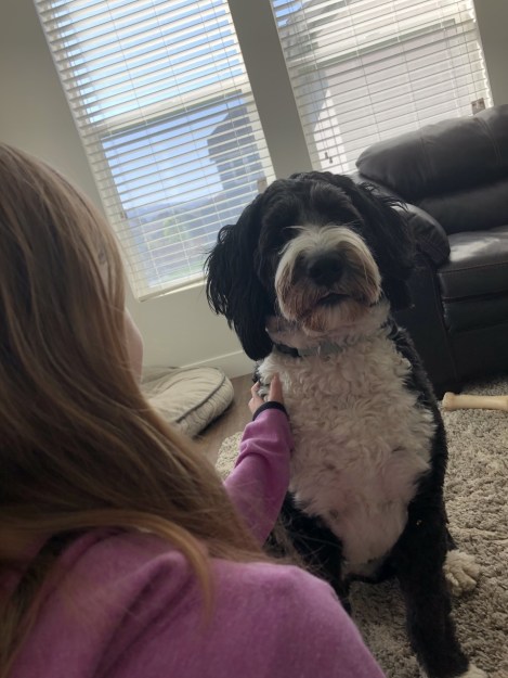 This long shot was another one that I really liked. It works well to set up the environment as well as the character’s position in that space. Below, I have a picture of my sister and the dog, and I think it’s a rather nice picture. It sets up the area well, as well as the character’s relationship to the space as well as each other.